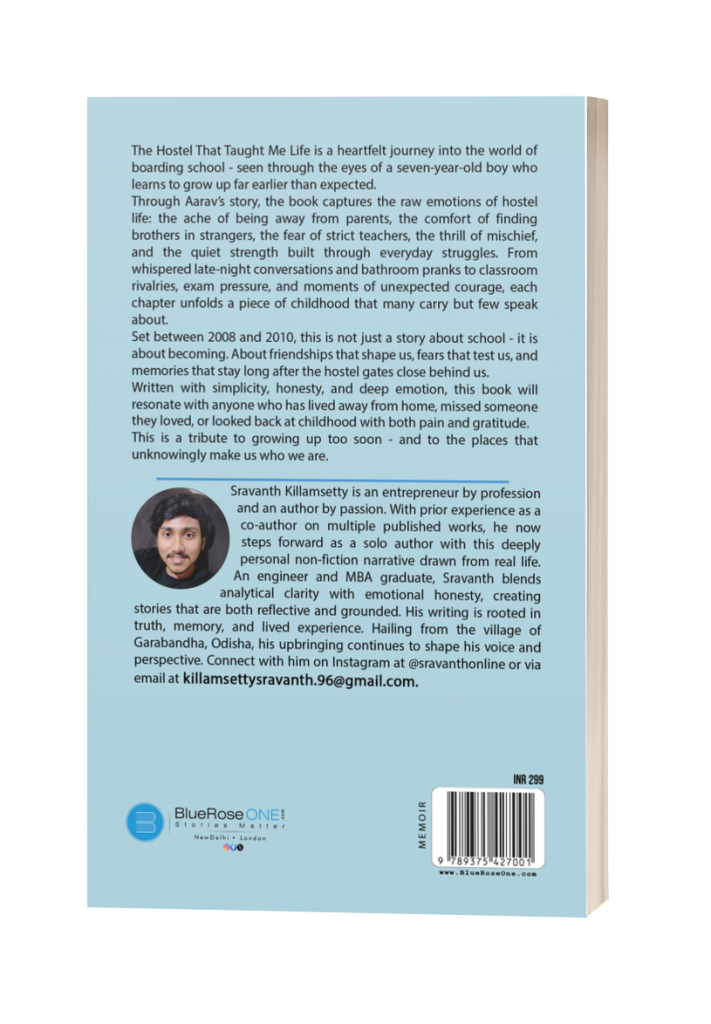 Set between 2008 and 2010, The Hostel That Taught Me Life is a heartfelt account of hostel life seen through seven-year-old Aarav’s perspective. What begins as a separation from home slowly transforms into a journey of emotional growth and self-discovery. Through simple yet powerful storytelling, the book captures: